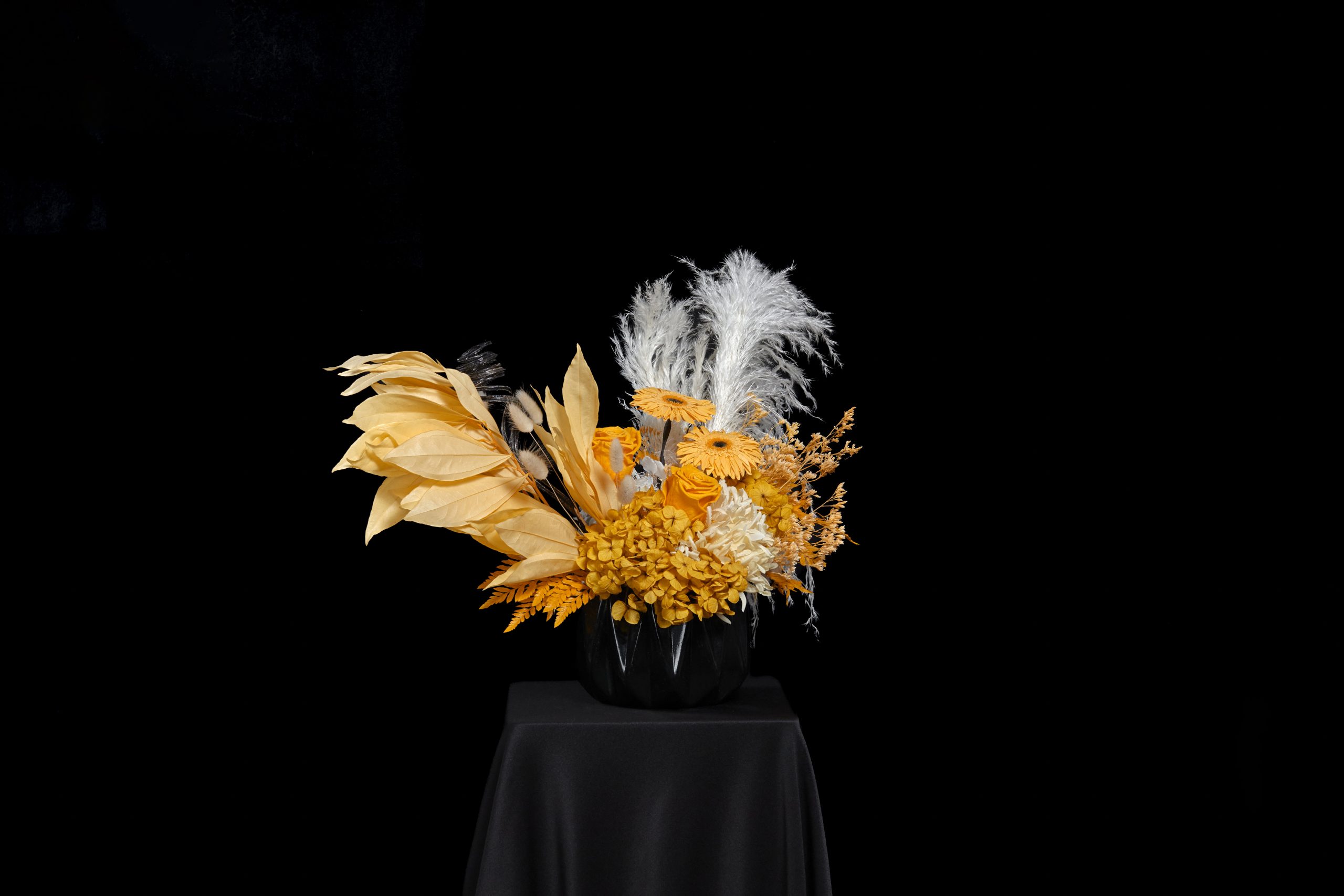 Diseño Floral natural (ETERNO) preservado con Gerbera, Rosas, Hortencias, y Follajes especiales.