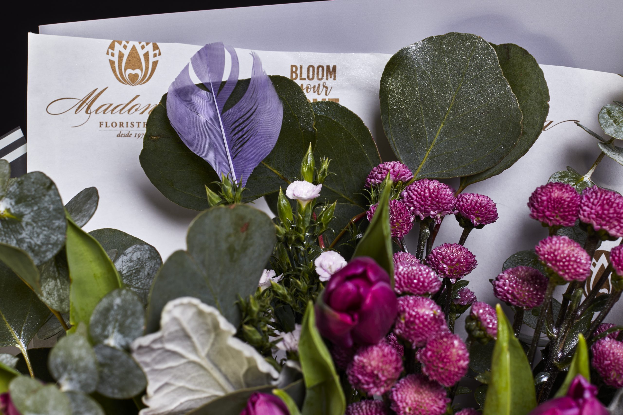 Ramo floral natural con 5 Tulipanes acompañado con accesorios y Follajes Premium de la temporada.