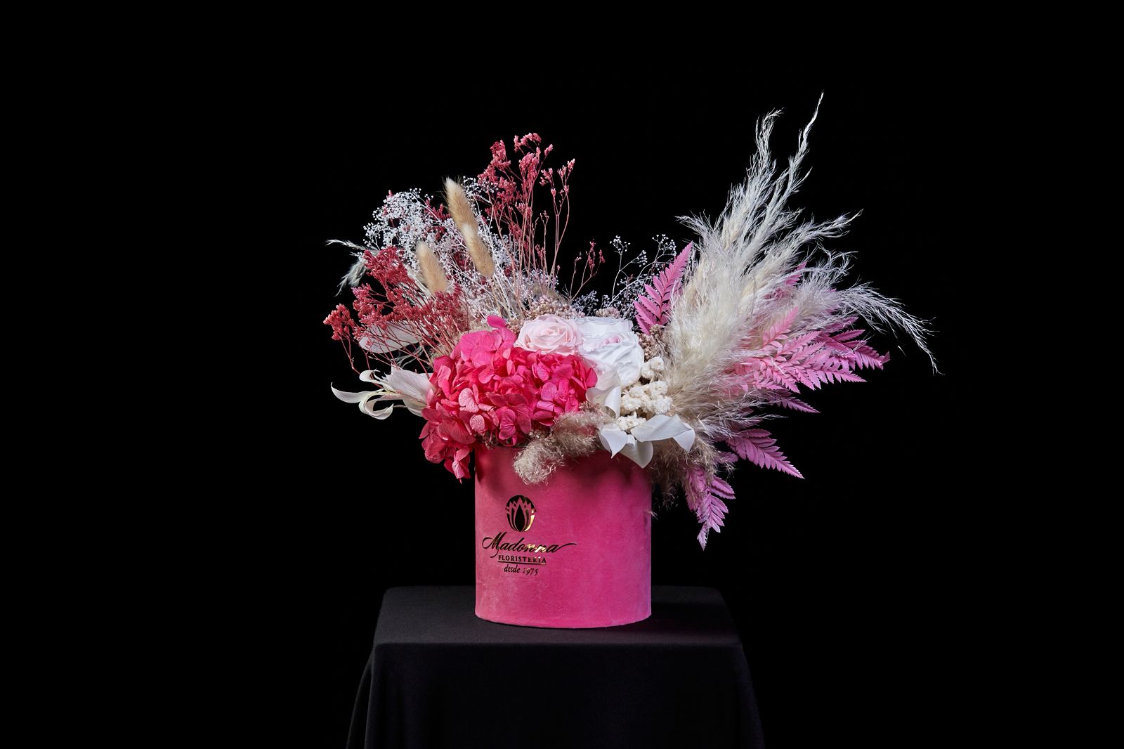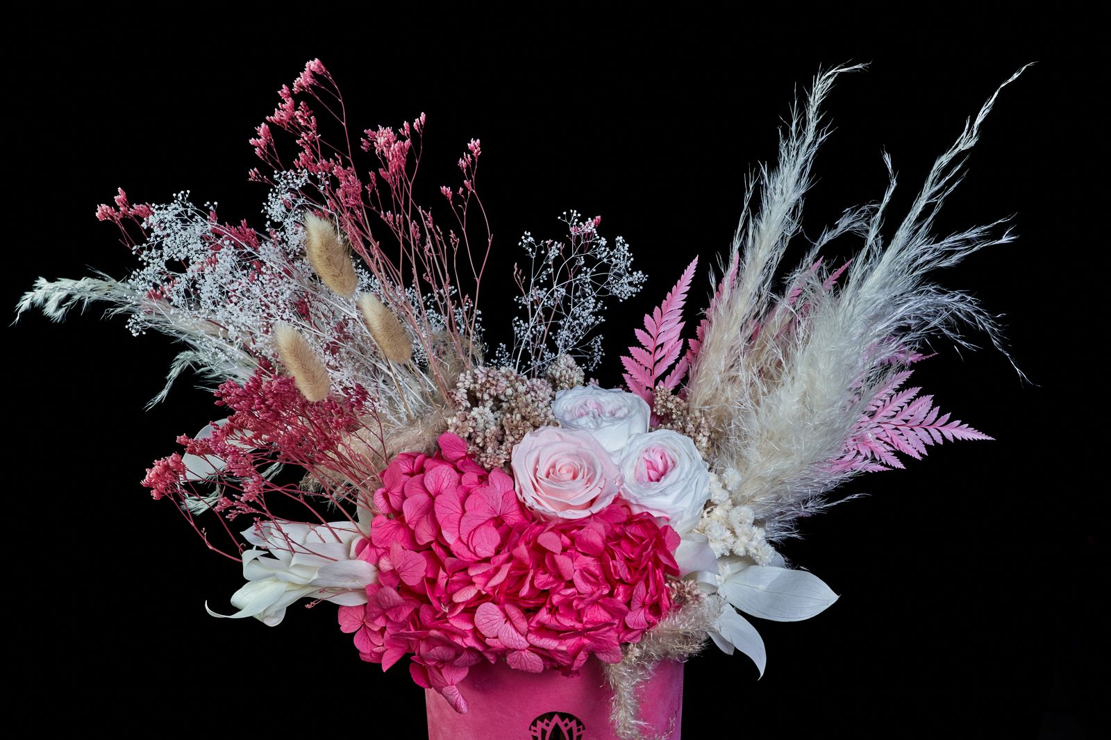 Jardín Eterno es un diseño floral preservado que captura la belleza del amor de mamá en una composición que perdura en el tiempo. La elegancia de las rosas inglesas, acompañadas de rosas, hortensias y follajes, crea un arreglo sofisticado y lleno de significado.