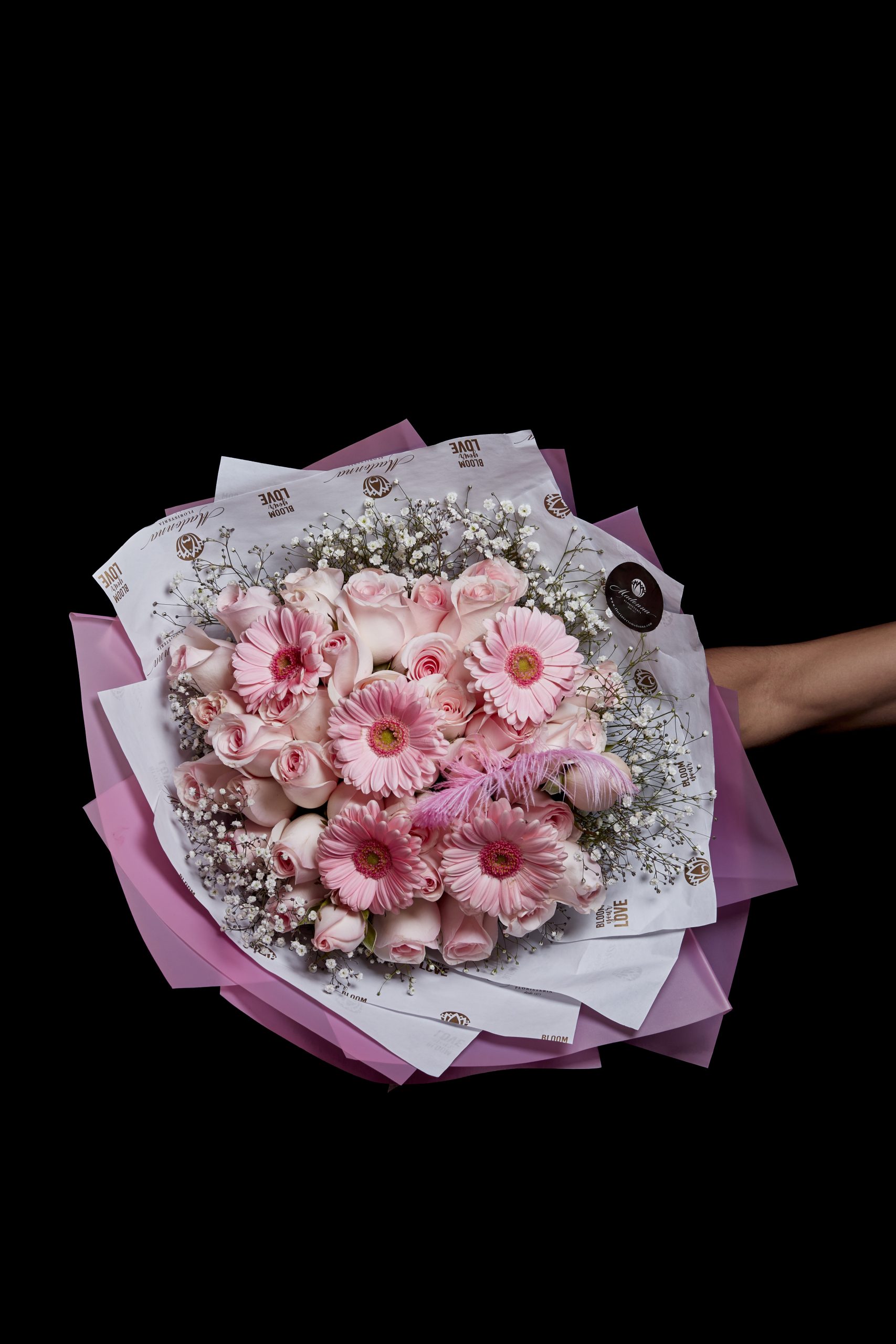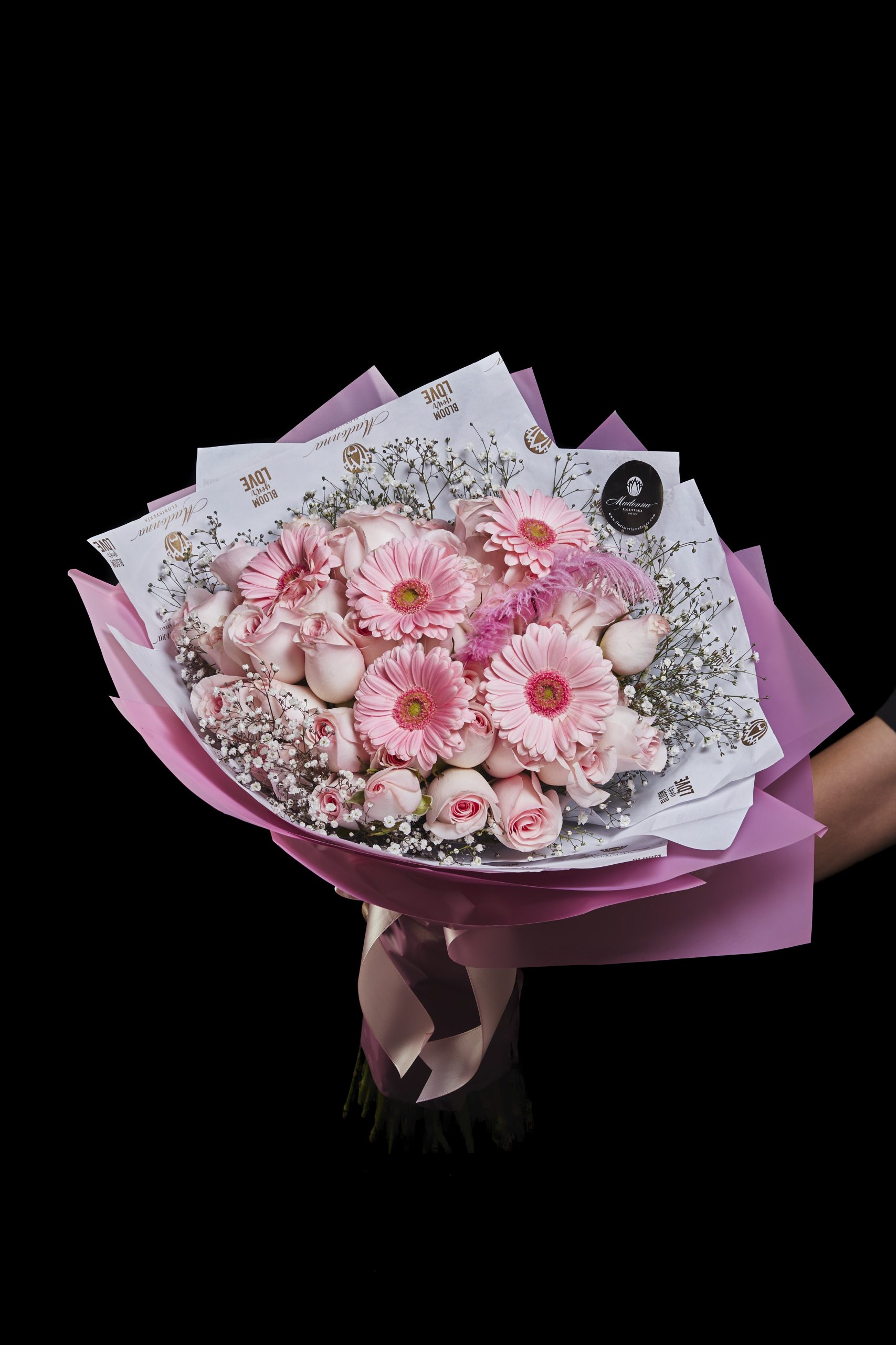 “Primer Suspiro” Ramo Premium, ideal para Florecer el tierno Amor. Ramo floral natural con Rosas, Gerberas y Gypsophilia.